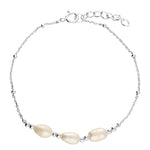 Evoke a sense of timeless elegance with this exquisite triple pearl bracelet featuring a delicate beaded chain adorned with three dainty freshwater rice pearls.