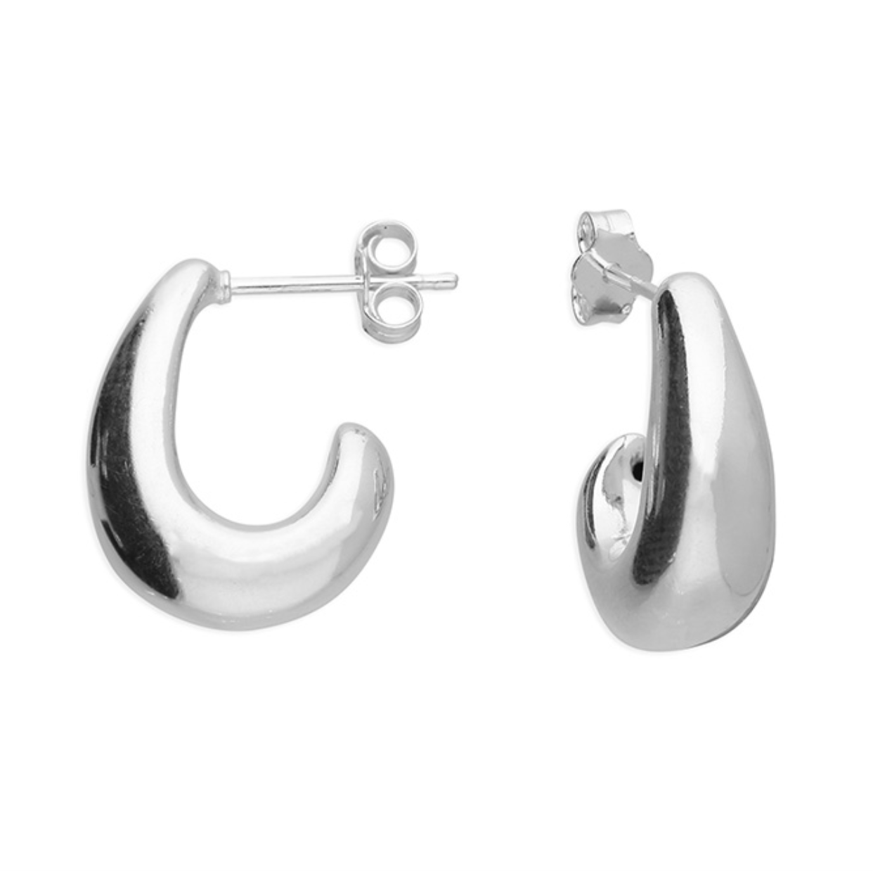 Small curved pear shape stud with a polished finish, giving it a contemporary and sophisticated look.
