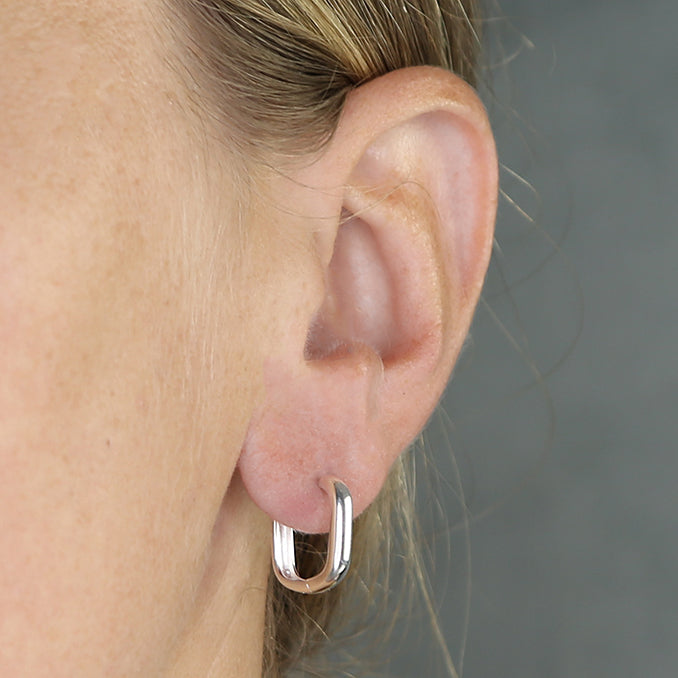 Get ready to add some modern flair to your earring collection with our Small Square Hoops! These mid-size hoops feature a unique square shape and an easy-to-use click fastening.