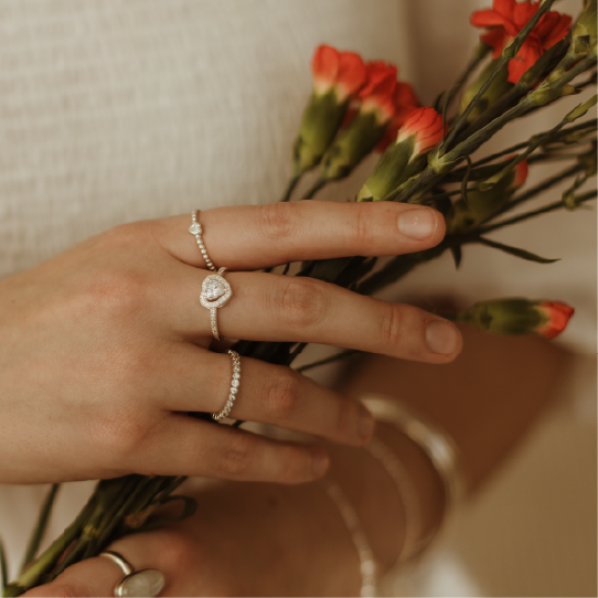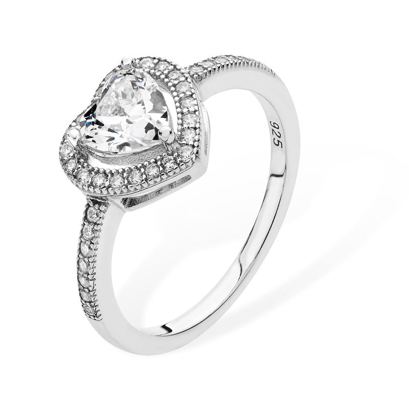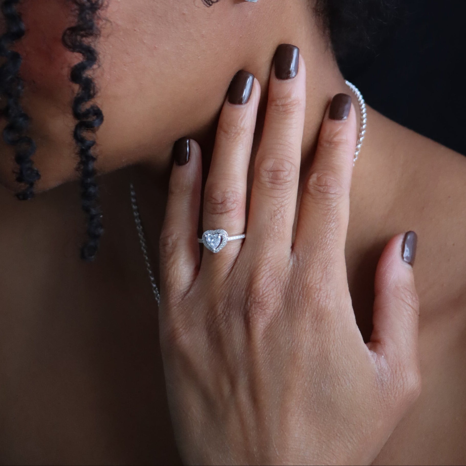 The Aurora Heart Ring is a sterling silver symbol of love that will last forever. With a stone set heart design, and a halo of tiny sparkling stones, this ring radiates with charm and elegance. Rhoidum plated to keep it tarnish free.