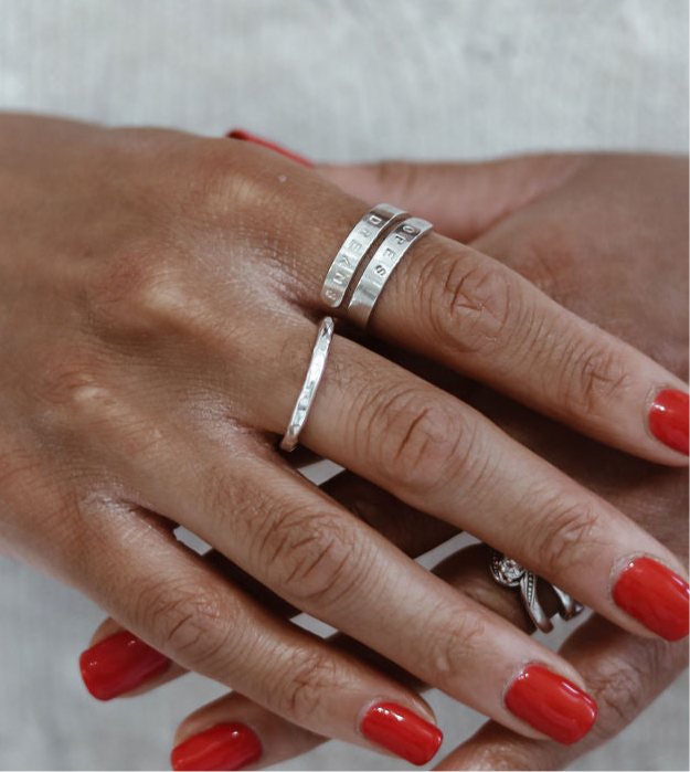 Elevate your everyday look with our Signature Hammered Stacking Ring. The hammered finish adds a touch of texture and style to this simple yet stylish piece. Perfect for wearing on its own or stacking with other rings for a personalised touch.
