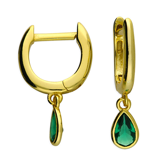 Oval Green Huggie Hoops in Gold