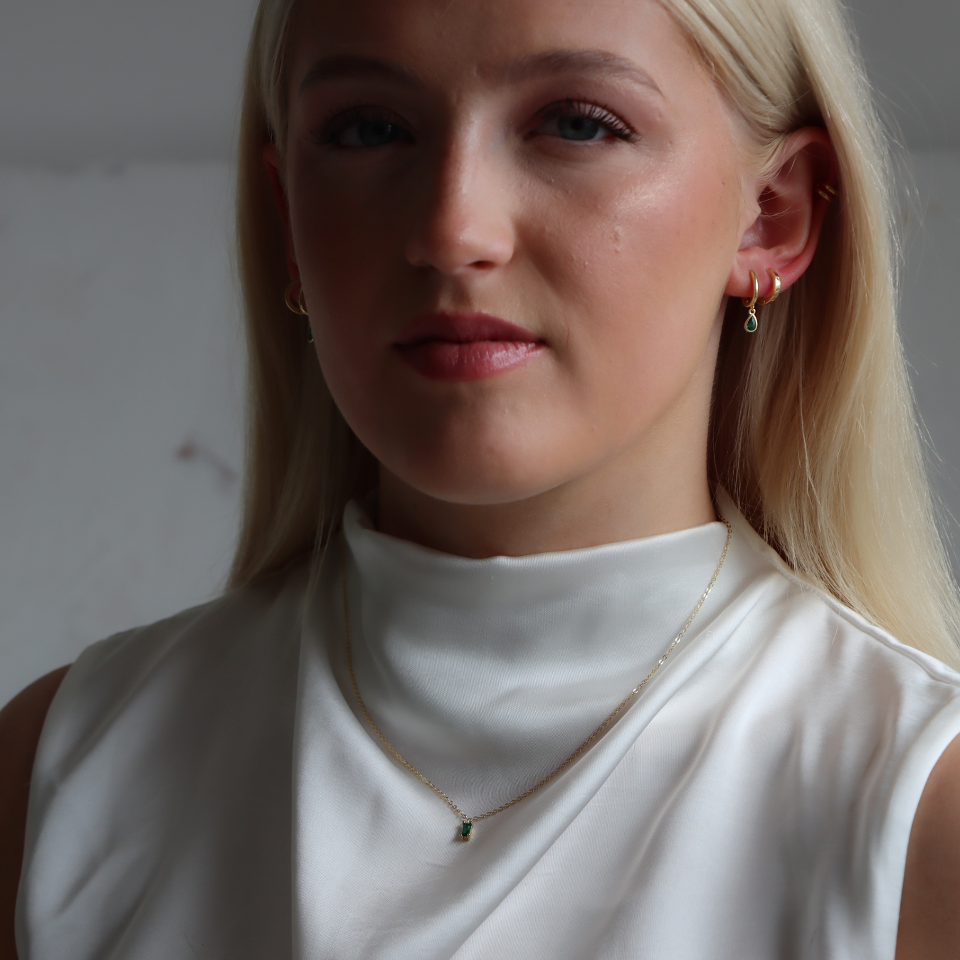 Add a pop of color to your ear stack with our playful Tahiti Drop Hoop Earrings. The emerald green color and colorful design are sure to make a statement. Perfect for adding a quirky touch to any outfit.