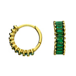 Be dazzling with these emerald huggie hoop earrings. Make a statement that will turn heads and add a pop of color to your outfit with these gorgeous emerald huggie hoop earrings. Feel confident and radiant, whether you wear these alone or create the ultimate ear stacked up with gold and green hues.