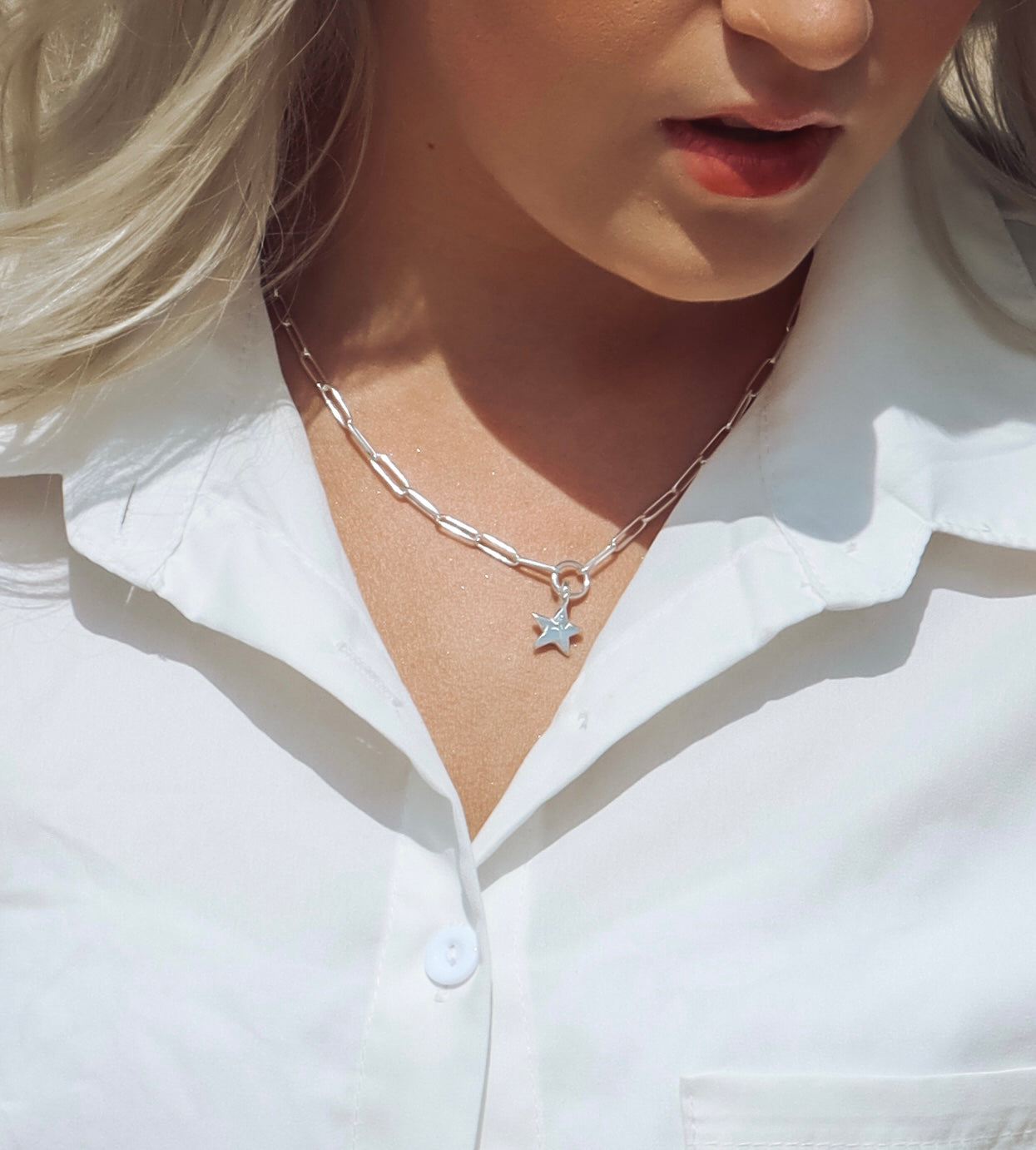 Handcrafted with a striking star motif, this chain adds a touch of raw beauty to your daily style. Let it remind you to always strive for the stars.